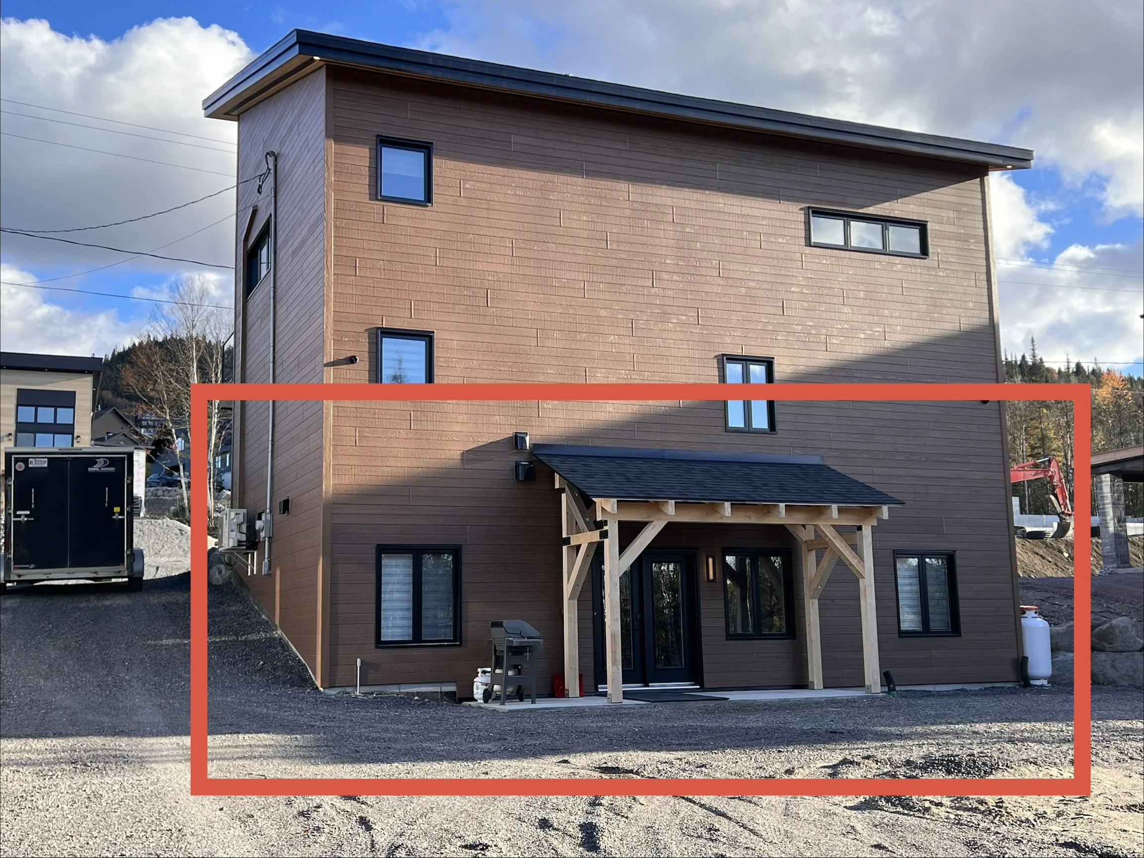 Le condo tout neuf aussi, quant à lui, propose un cadre cosy et pratique, idéal pour les plus petits groupes ou les couples. Vous y trouverez tout le nécessaire pour un séjour relaxant, avec un foyer chaleureux, ainsi qu’un accès direct aux sentiers de motoneige ou de hors-piste et même à la station de ski.